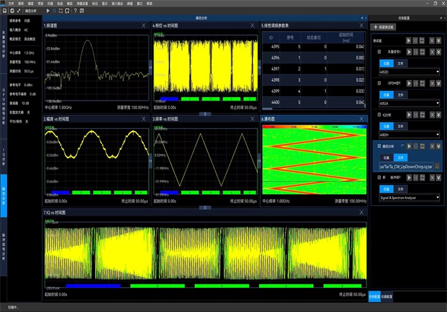 通用信号分析:支持矢量信号分析、误码率测试、多调制分析(DVB-S2X)、脉冲信号分析、瞬态分析、跳频信号分析、FMCW 信号分析、模拟解调、OFDM信号分析等多种通用信号分析功能。