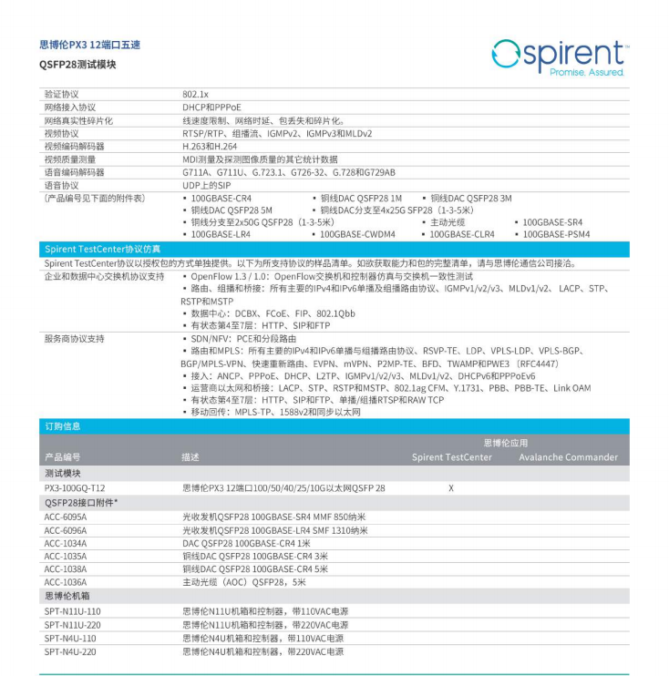 Spirent思博伦PX3 12端口五速 OSFP28测试模块