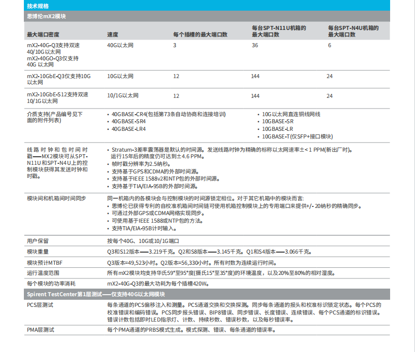 Spirent思博伦mX2 40G、10G和10G、1G双速以太网测试模块
