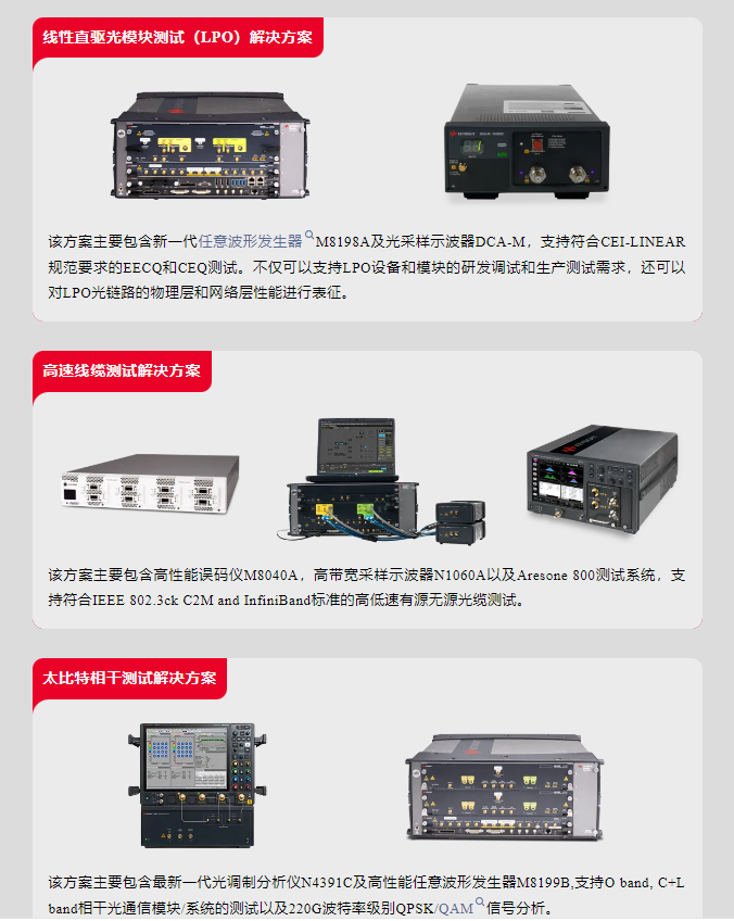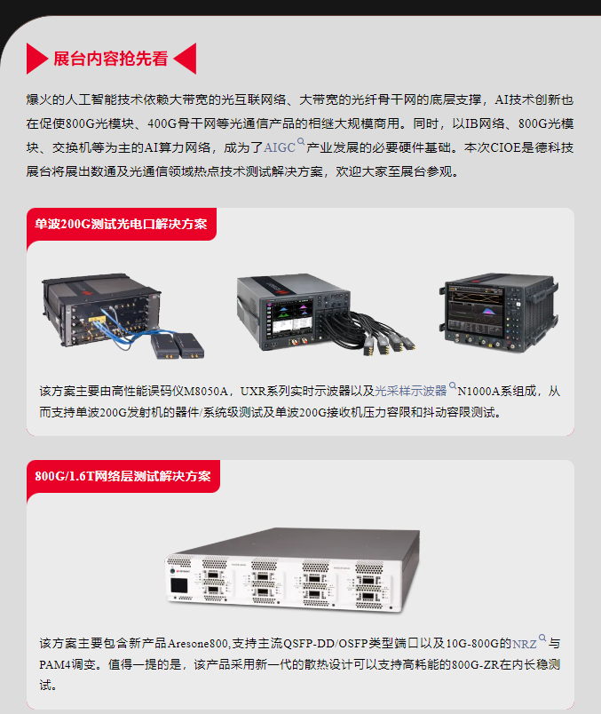 现场与我们的技术专家深入交流,详细了解是德科技最新的关于数据中心800G/1.6T光电测试、太比特相干、高速线缆测试、LPO测试、硅光器件测试等等解决方案。