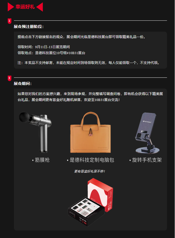 温馨提示:提前注册活动,可在活动期间至是德科技展台10B31领取精美礼品一份!