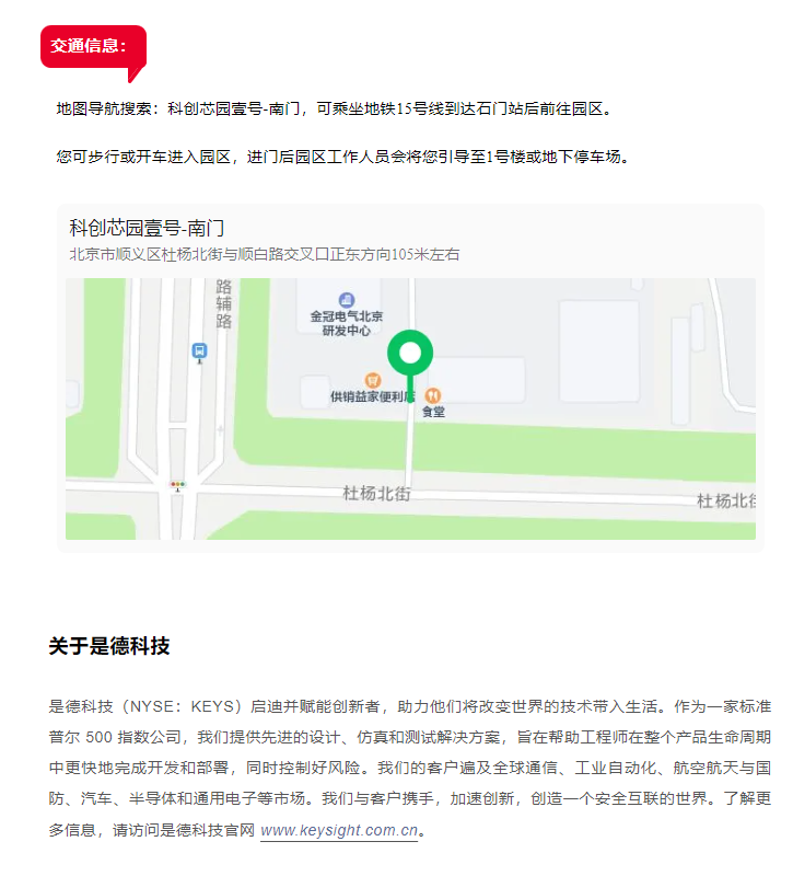 地点:北京顺义 科创芯园壹号1号楼报告厅